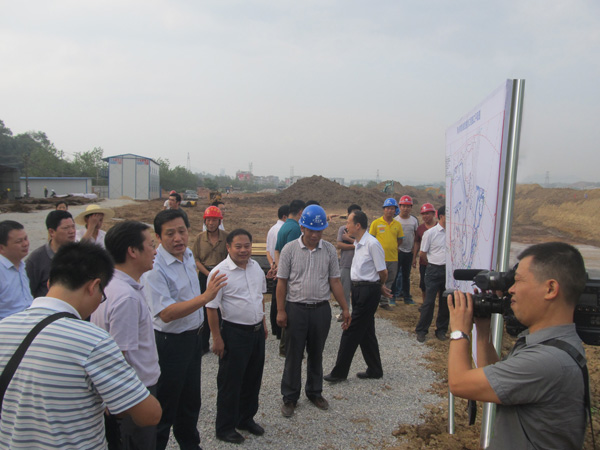 萍鄉市市長李小豹一行在施工現場聽取情況匯報