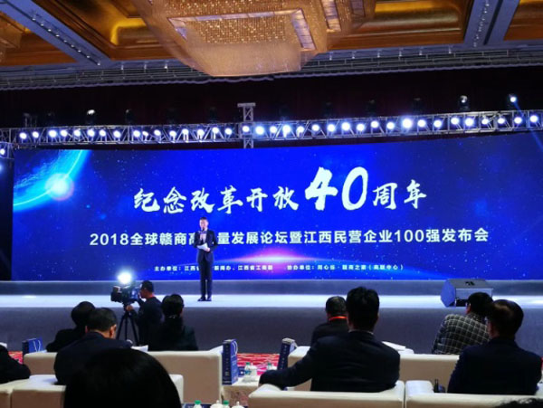 11月26日下午,由江西省人民政府新聞辦、江西省工商聯主辦的紀念改革開放40周年2018全球贛商高質量發展論壇暨江西民營企業100強發布會在南昌召開。江西省委常委、統戰部部長陳興超出席大會并致辭,副省長孫菊生,省政協副主席、省工商聯主席雷元江等出席發布會。參加此次會議的還有省直部門相關負責人、來自全世界的贛商和江西民營企業100強、制造業100強、服務業20強的企業代表。