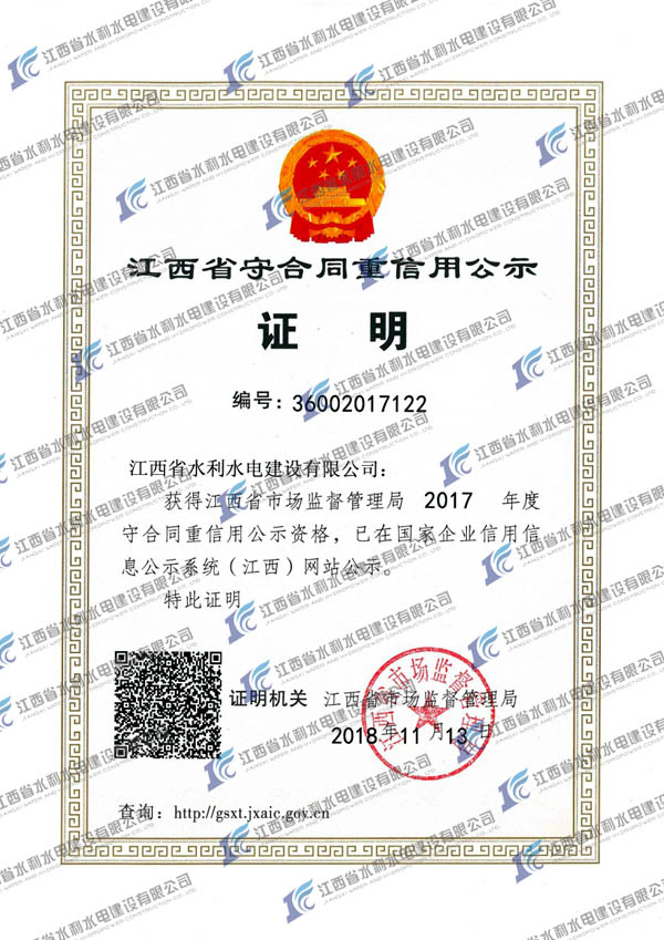 近日,公司憑借良好的口碑,再一次榮獲守合同重信用企業公示資格證明。