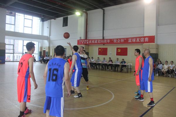 為慶祝建黨96周年,促進稅企之間的友誼,活躍和豐富雙方職工的文化娛樂生活。近日,由南昌縣國稅局與我公司聯合舉辦的“慶祝建黨96周年稅企杯籃球友誼賽”在江鈴國際室內籃球館圓滿落幕。出席本次比賽的嘉賓領導主要有南昌縣國稅局黨組書記、局長萬日新,黨組成員、副局長王一平,黨組成員、紀檢組長宗震宇,江西江鈴進出口有限責任公司黨委書記郭任遠,江西省水利水電建設有限公司董事長王元旦,黨委書記王延軍,工會主席史偉等。