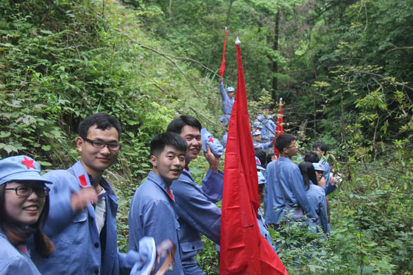 抵達井岡山后,全體人員立刻進入三灣隊伍整編環(huán)節(jié),推薦隊長、政委和旗手,設(shè)計隊名、口號和LOGO。很快“飛龍隊”、“戰(zhàn)鷹隊” 等名字紛紛閃亮登場。“龍征萬里,所向披靡”、“ 群狼行千里,星火可燎原”等口號一次又一次迎來全場的陣陣歡呼。隨后進行了“穿越叢林、突破封鎖線、匍匐前進、火線救援”4個比賽項目,這些比賽項目,增強了大家的團隊意識,每名成員充分認識到了團結(jié)協(xié)作、友愛互助的重要性,使大家在比賽中受到啟發(fā)、受到鼓舞、更使大家得到了鍛煉,經(jīng)受了考驗。