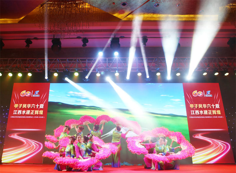 在喜慶熱鬧的開場舞《盛世中華》樂曲聲中,拉開了晚會的序幕,一曲優美動聽的《今天是你的生日》,表達了對公司六十華誕的深情祝福,配樂詩朗誦《我驕傲,我是水建人》抒發了水建人對水利事業的熱愛與執著,舞蹈《我的祖國》,展現了公司退休女職工的精神風采和對公司的深厚感情,男聲獨唱《羅灣那個地方》,喚起了多少“羅灣水建人”曾經在那里生活的記憶,來自上海的退休職工代表,為晚會帶來一首自己改編的歌曲《水建的朋友來相會》,詮釋了他們的激情與夢想,最后,由公司高中層管理人員和總部員工組成的60人大合唱《團結就是力量》,把晚會推向了高潮。團結是我們的力量之源,團結是企業騰飛的支點,走過了六十年輝煌歷程的江西水建,正在昂首闊步踏上新的征程。讓我們團結起來,以必勝的信心,發奮的努力,繼承和發揚老一輩水建人的精神和傳統,擔當起新一代水建人改革創新科學發展的光榮使命,繼往開來,解放思想,開拓創新,凝心聚力,不斷開創江西水建發展的新局面,創造更加燦爛的明天!